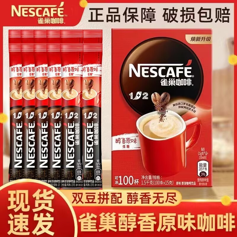 100g/袋 雀巢速溶咖啡粉三合一咖啡1+2低糖原味咖啡袋装奶咖提神