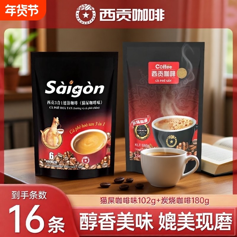 越南西贡咖啡炭烧猫屎味速溶三合一咖啡粉16条学生冲调饮品原味