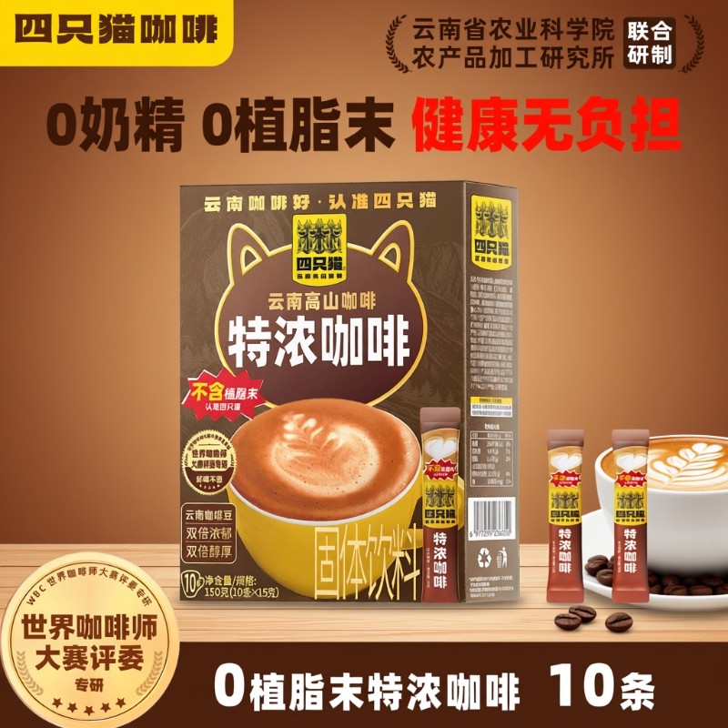【秒杀】四只猫咖啡云南高山双倍浓郁咖啡三合一咖啡速溶官旗正品