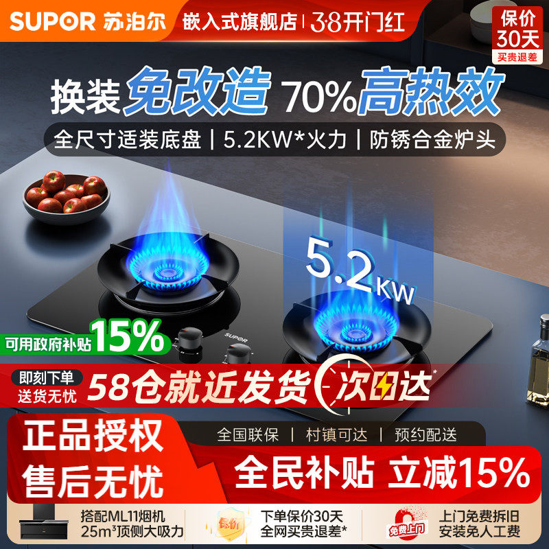 苏泊尔燃气灶双灶家用煤气灶天然气炉灶具液化气灶台嵌入式猛火灶