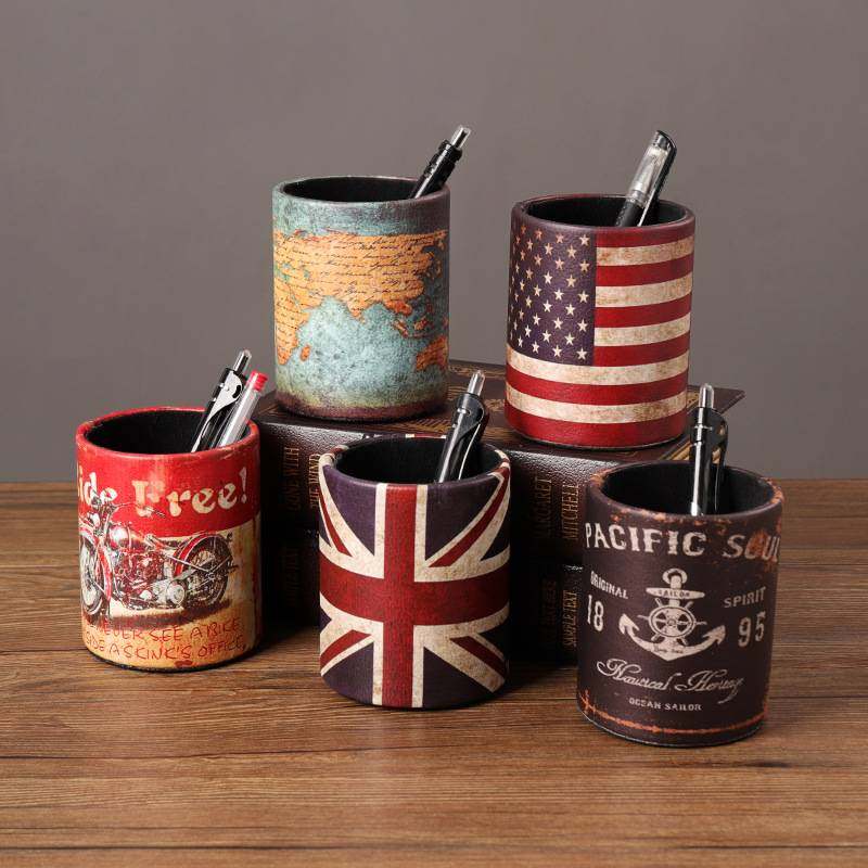 美式复古创意桌面摆件笔筒办公室高颜值麦门可爱学生文具收纳粉色红色绿色