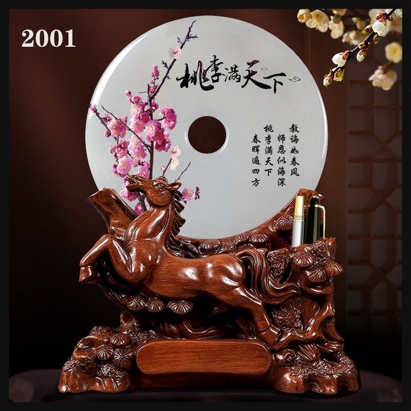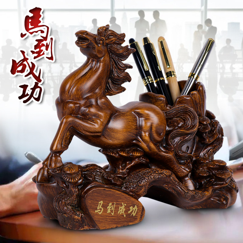 新款红旗办公室笔筒摆件福瑞龙年创意水晶摆件纪念品中式客厅玄关办公室领导高档装饰品老板桌面文台收纳礼品