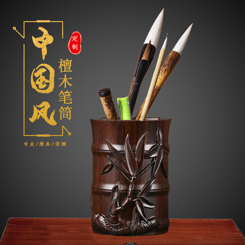 复古中国b风实木笔筒创意高档红木毛笔笔筒大容量办公室笔筒摆件