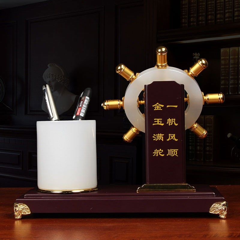 金玉满舵办公室笔筒摆件高档商务礼品书房桌面装饰开业送礼可定制