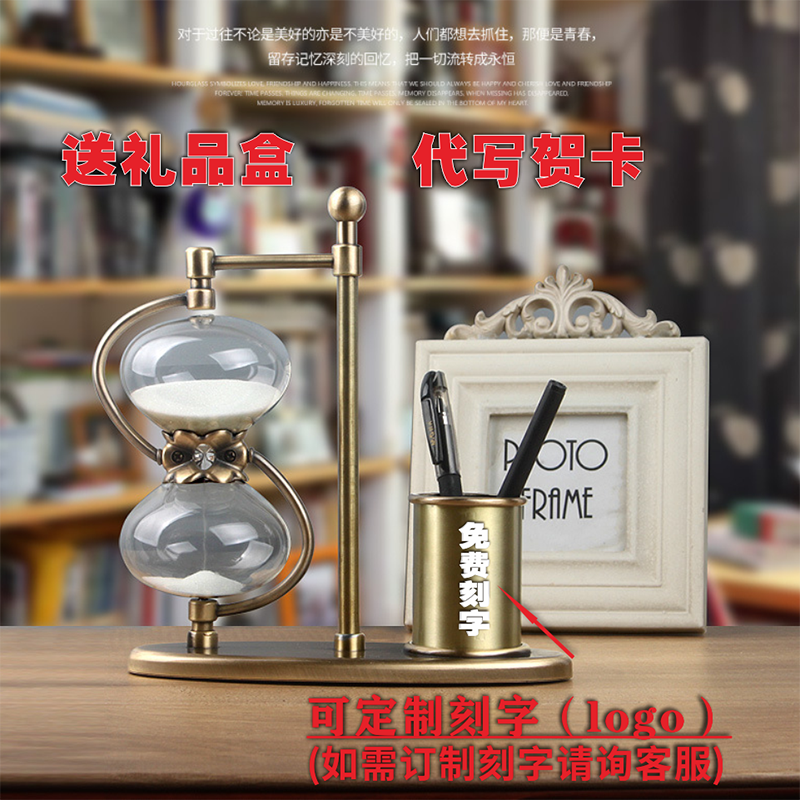创意办公室笔筒摆件轻奢沙漏计时器送领导书桌定制礼物刻字送礼盒