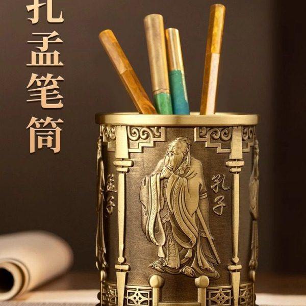 复古中国风实木笔筒创意高档红木毛笔笔K筒大容量办公室笔筒摆件
