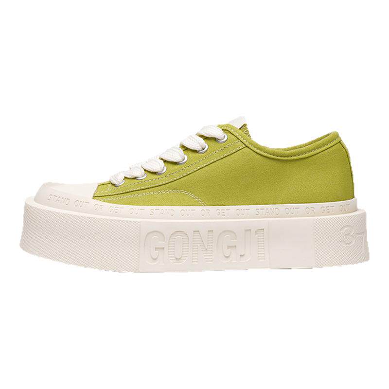 【孟子义同款】GONGJI方头帆布鞋女小众厚底板鞋增高鞋子小白鞋