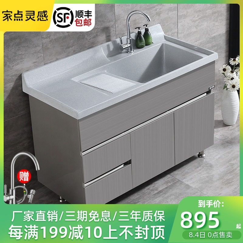 304不锈钢洗手池 阳台太空铝洗衣柜落地户外洗脸池台家用一体水槽