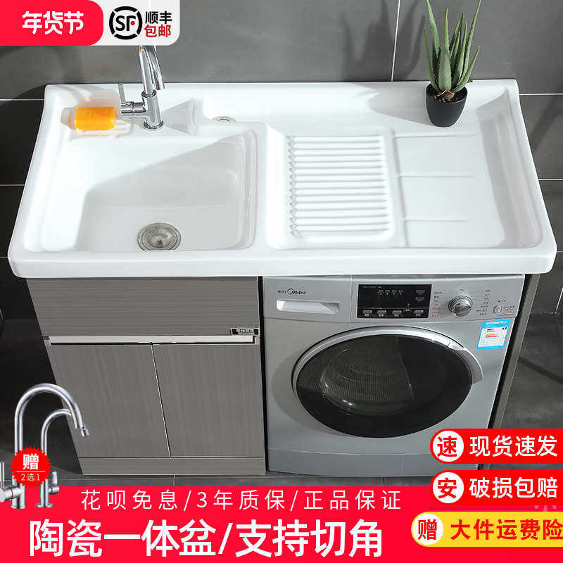 陶瓷洗衣机柜一体阳台洗衣池带搓板太空铝浴室柜组合不锈钢洗衣柜