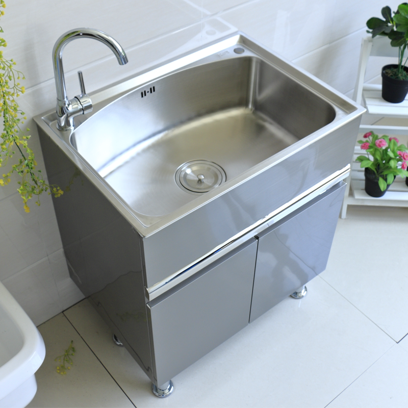 索菲特不锈钢阳台洗衣柜单柜洗手台陶瓷定制洗衣池家用落地式水槽