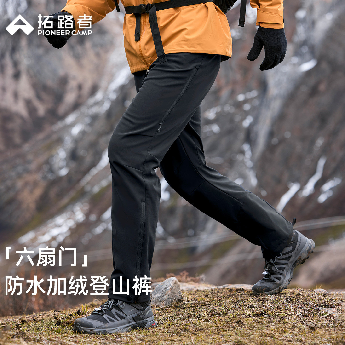 棵米ai蕉家!户外山系加绒加厚保暖防风防水徒步登山冲锋裤滑雪裤