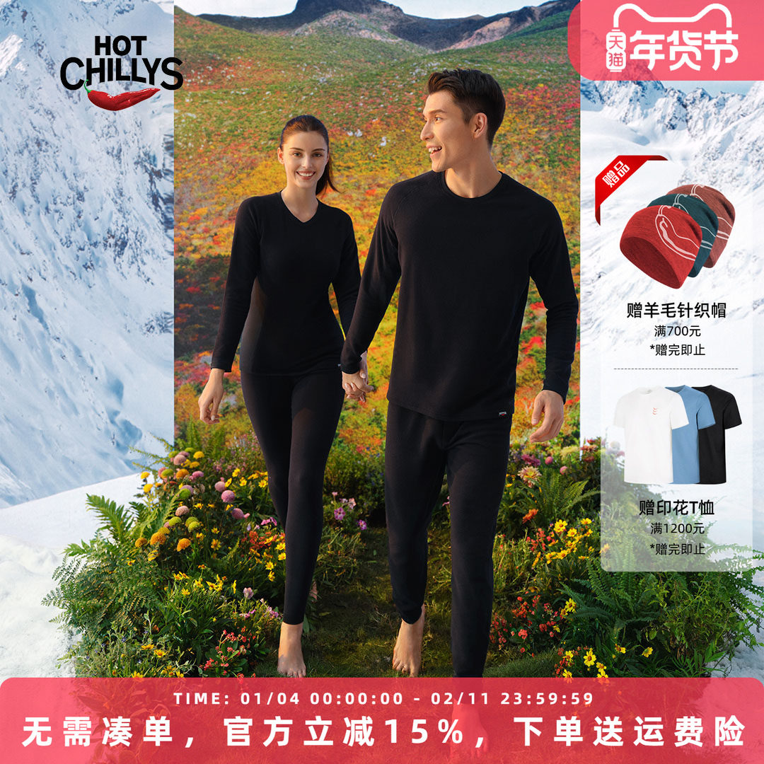 hotchillys红辣椒10级男女冬季加厚抓绒衣保暖内衣裤滑雪打底套装