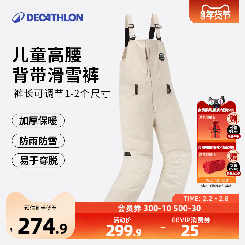 迪卡侬儿童滑雪裤加厚防水保暖男童女童单板宽松棉裤背带裤KIDO