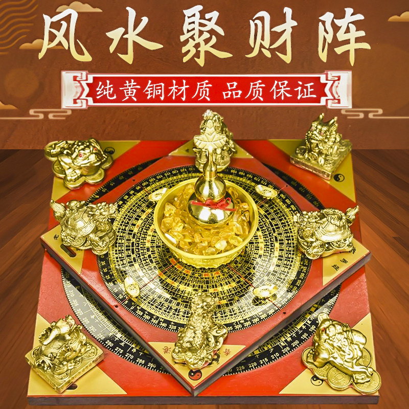 黄铜聚财阵客厅招财摆件葫芦龙龟金蟾貔貅罗盘风水聚宝盆店铺摆件