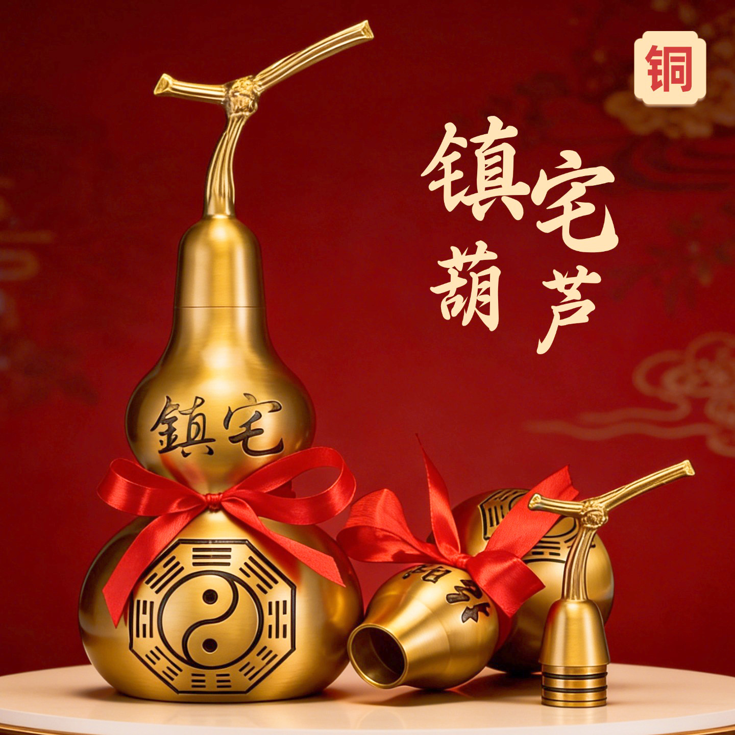 纯铜葫芦摆件开盖空心八卦铜葫芦镇宅车载桌面挂件家居客厅装饰品