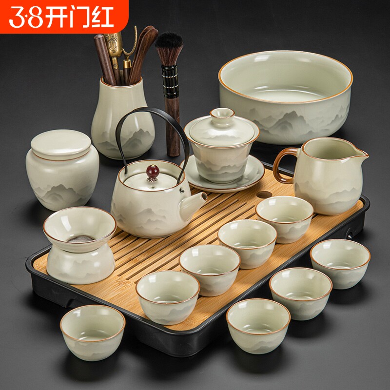 汝窑功夫茶具套装2026新款年轻人小茶台一整套茶杯茶盘泡茶专用