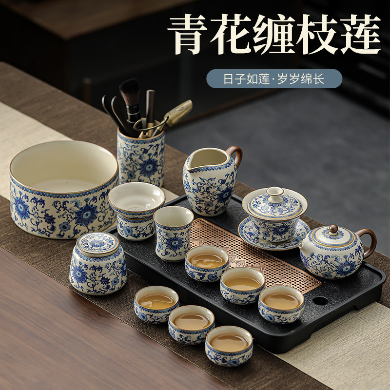 宝选青花汝窑功夫茶具套装新款轻奢高档礼盒家用泡茶盖碗茶壶整套