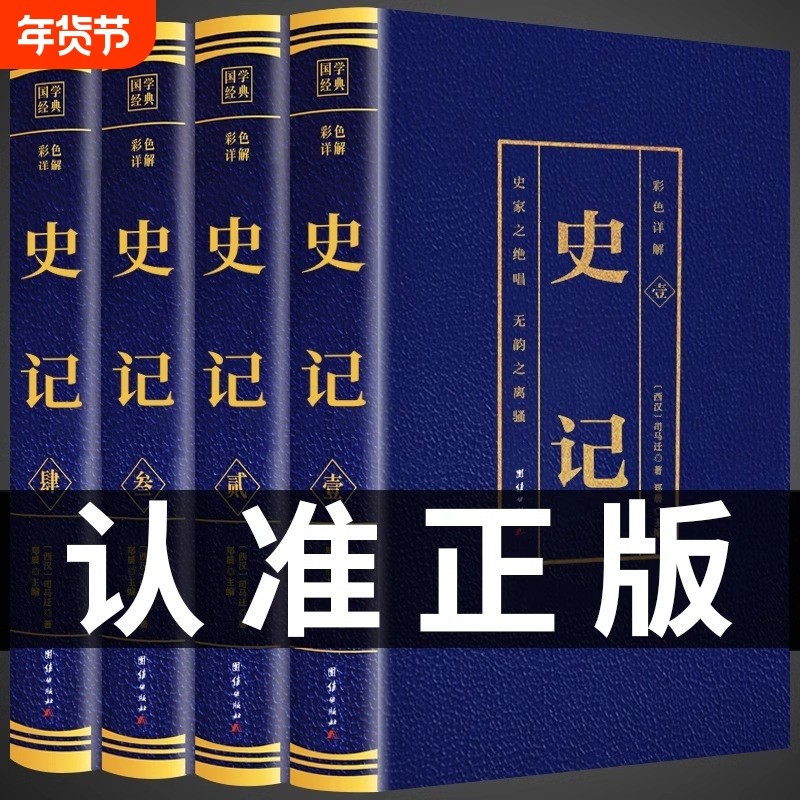 【精装全4册】文白对照史记正版无删减节全本史记全册书籍中国历史故事史书青少年版史记故事学生版资治通鉴二十四史国学经典书籍
