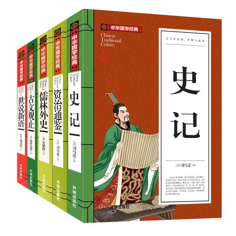 中华国学经典5册套装青少年版学生版原文注释译文 史记儒林外史资治通鉴唐诗三百首古文观止 文白对照中国通史中小学生历史书籍
