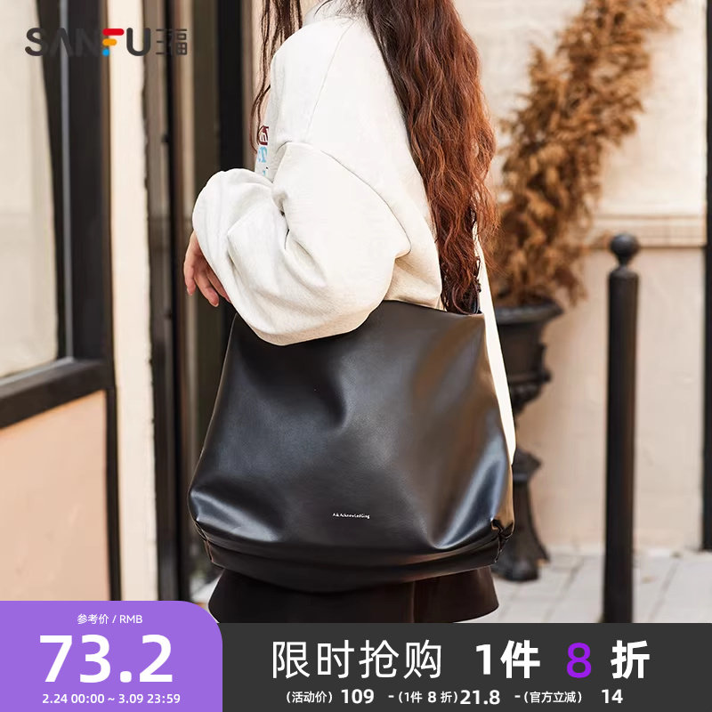 三福斜挎包女大容量包包通勤托特包日常百搭黑色大包女大学生上课