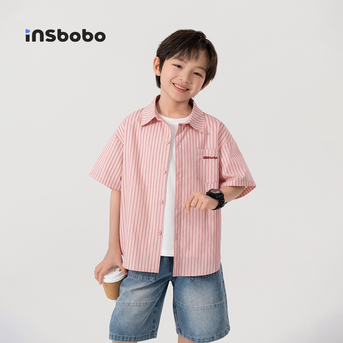 INSbobo童装男童衬衫2026夏季新款洋气条纹儿童衬衣休闲百搭上衣