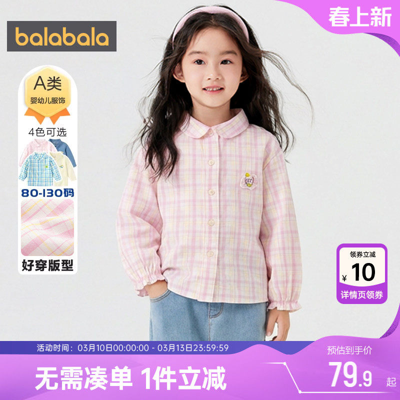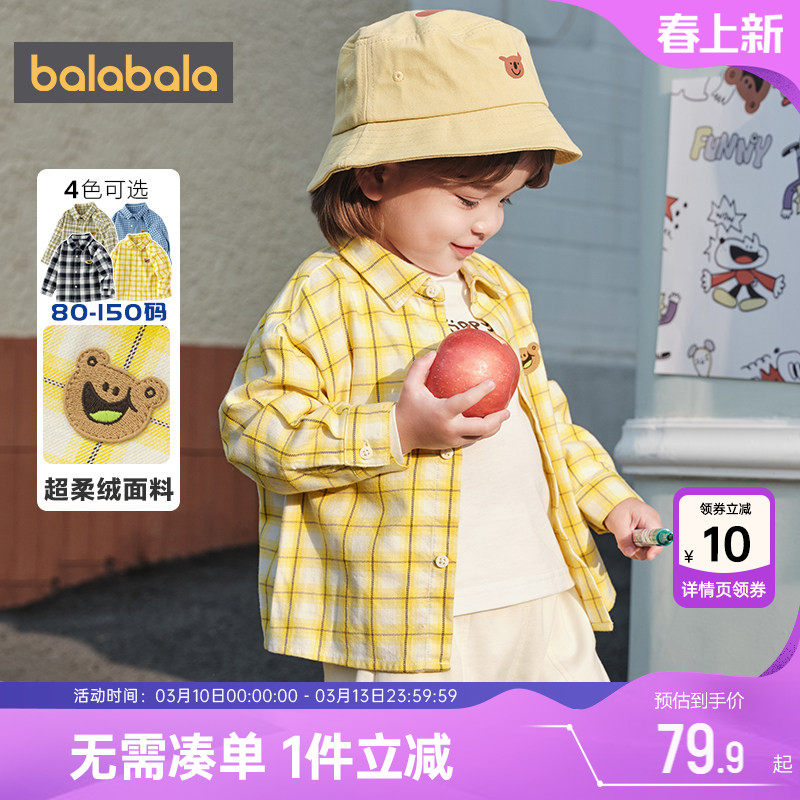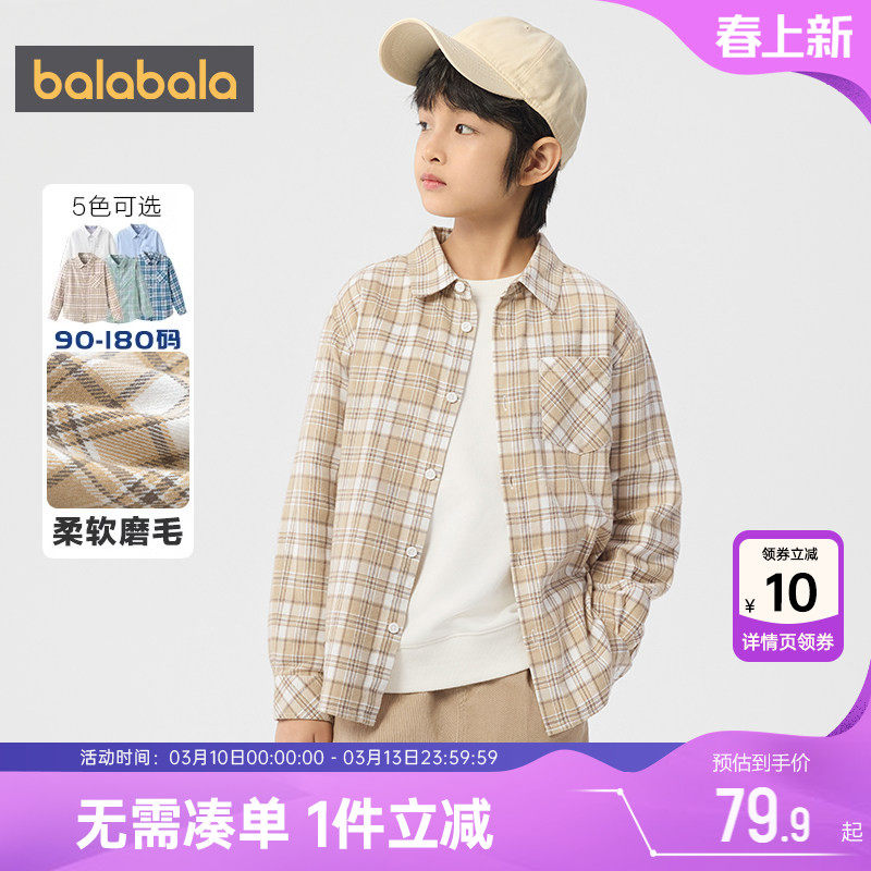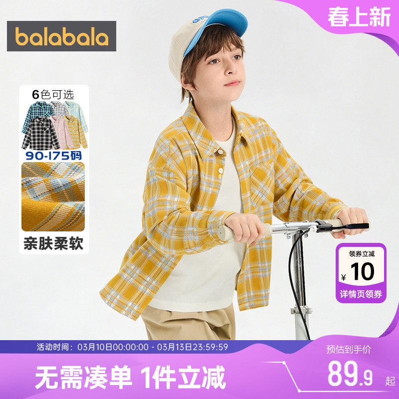 巴拉巴拉儿童格子衬衫男童女童衬衣春季2026新款童装大童宝宝上衣
