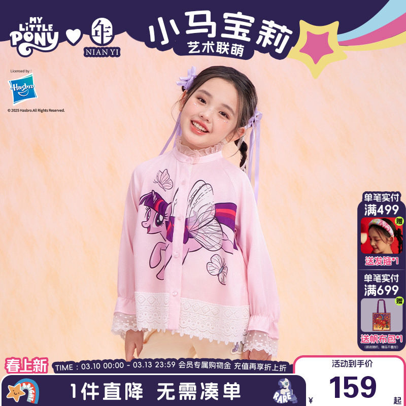 小马宝莉联名年衣童装衬衫春新款女童卡通娃娃领宽松上衣百搭内搭