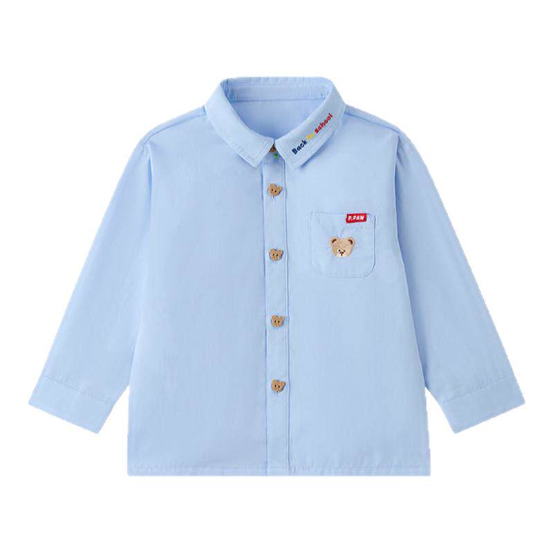 PawinPaw卡通小熊童装26年新款男宝宝儿童翻领学院风衬衫可爱宽松