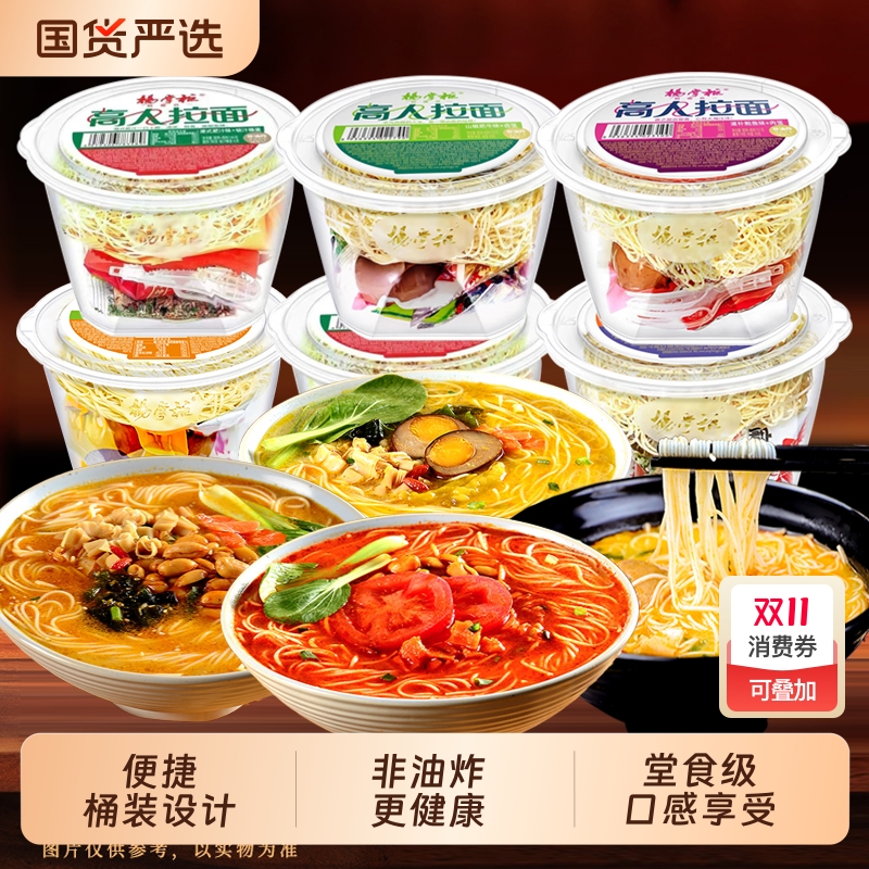 五谷道场旗舰店非油炸方便面桶装整箱番茄牛腩干拌面速食盒装泡面
