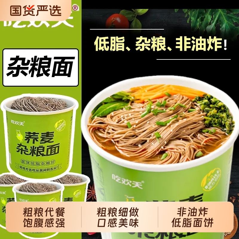 吃欢天荞麦杂粮面免煮代餐粗粮非油炸方便面桶装小面食品整箱调料