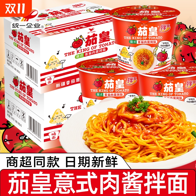 统一茄皇意式番茄肉酱方便面桶装拌面意面鸡蛋牛肉面速食泡面整箱