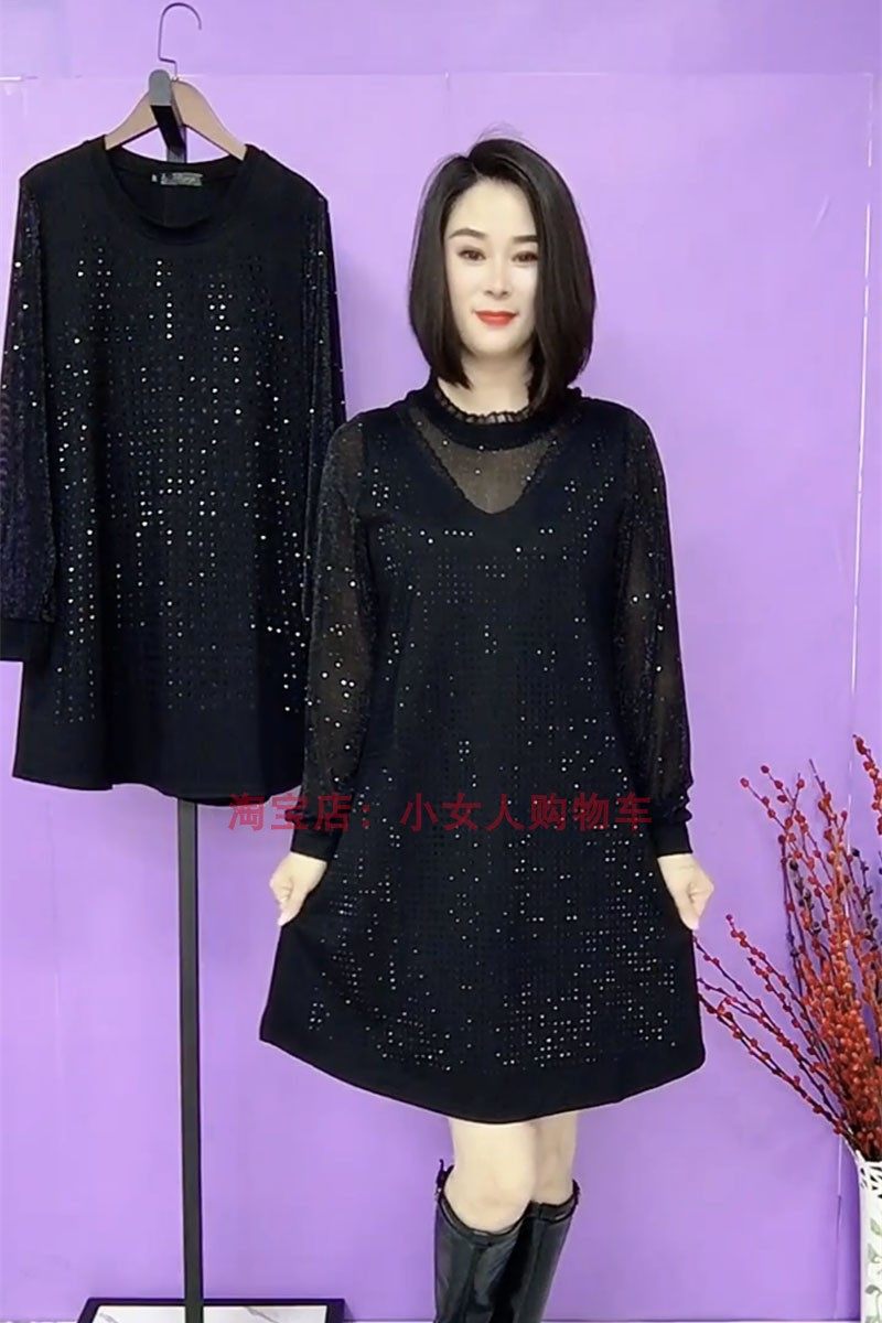 清仓捡漏专柜撤回特大码胖mm300斤中长裙加绒拼接修身长袖连衣裙