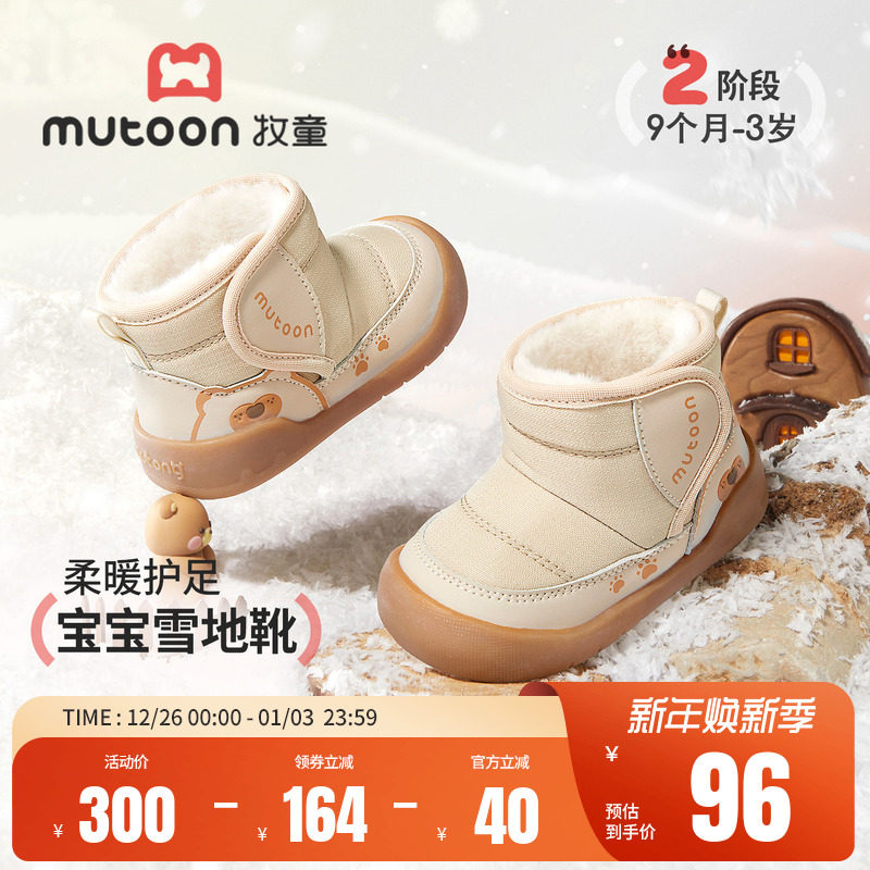 牧童童鞋宝宝棉靴2025冬季新款男童软底稳护鞋加绒保暖女童雪地靴