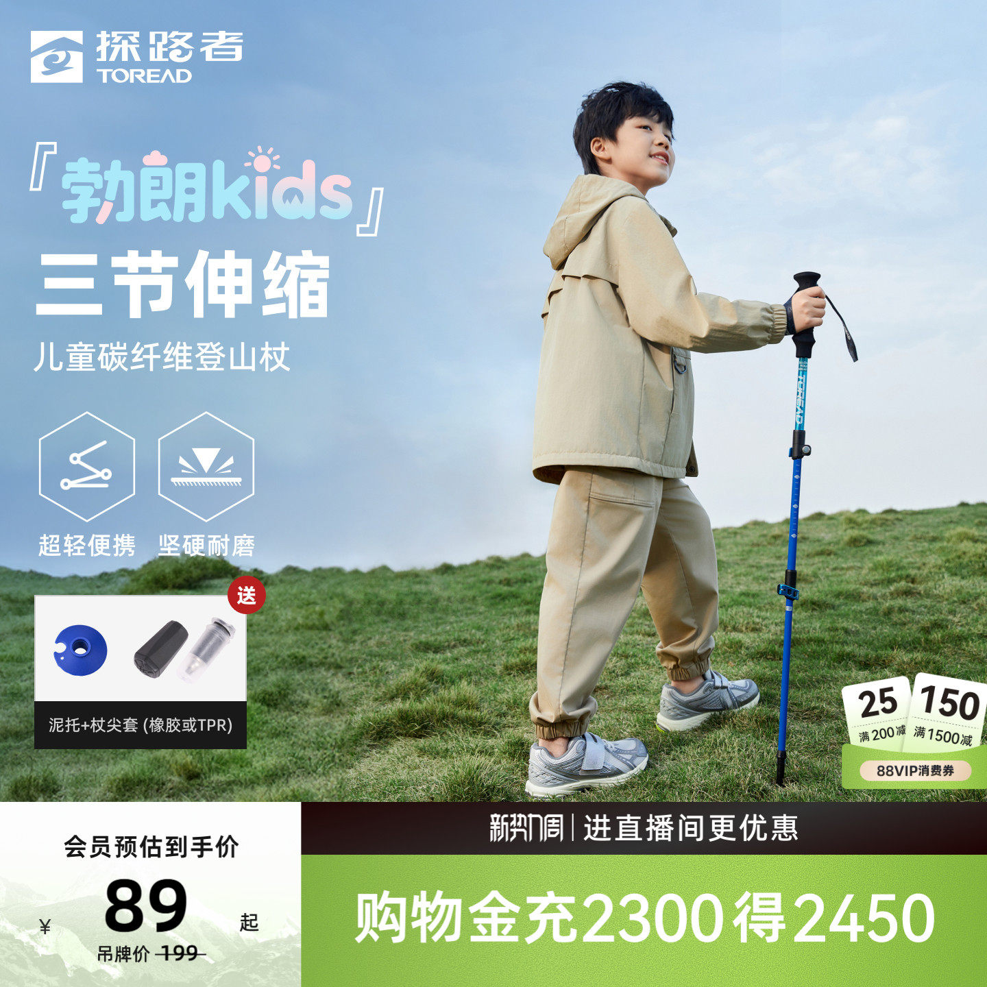 【云野kids】探路者儿童碳纤维登山杖手杖户外徒步轻便伸缩手杖