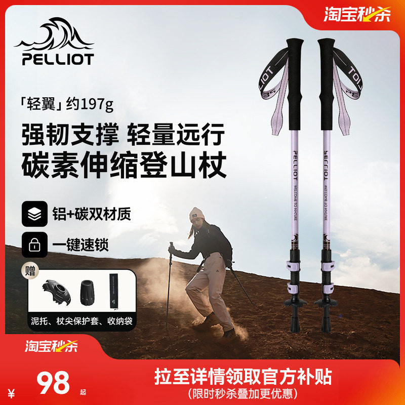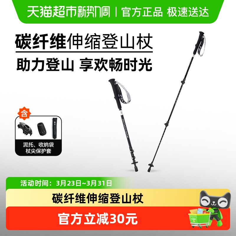 【赵露思同款】伯希和轻途户外登山杖女碳纤维伸缩手杖徒步装备男