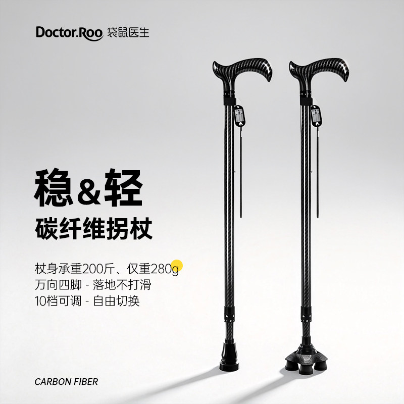 袋鼠医生碳纤维拐杖老人防滑医用轻便拐棍康复走路助行器伸缩手杖