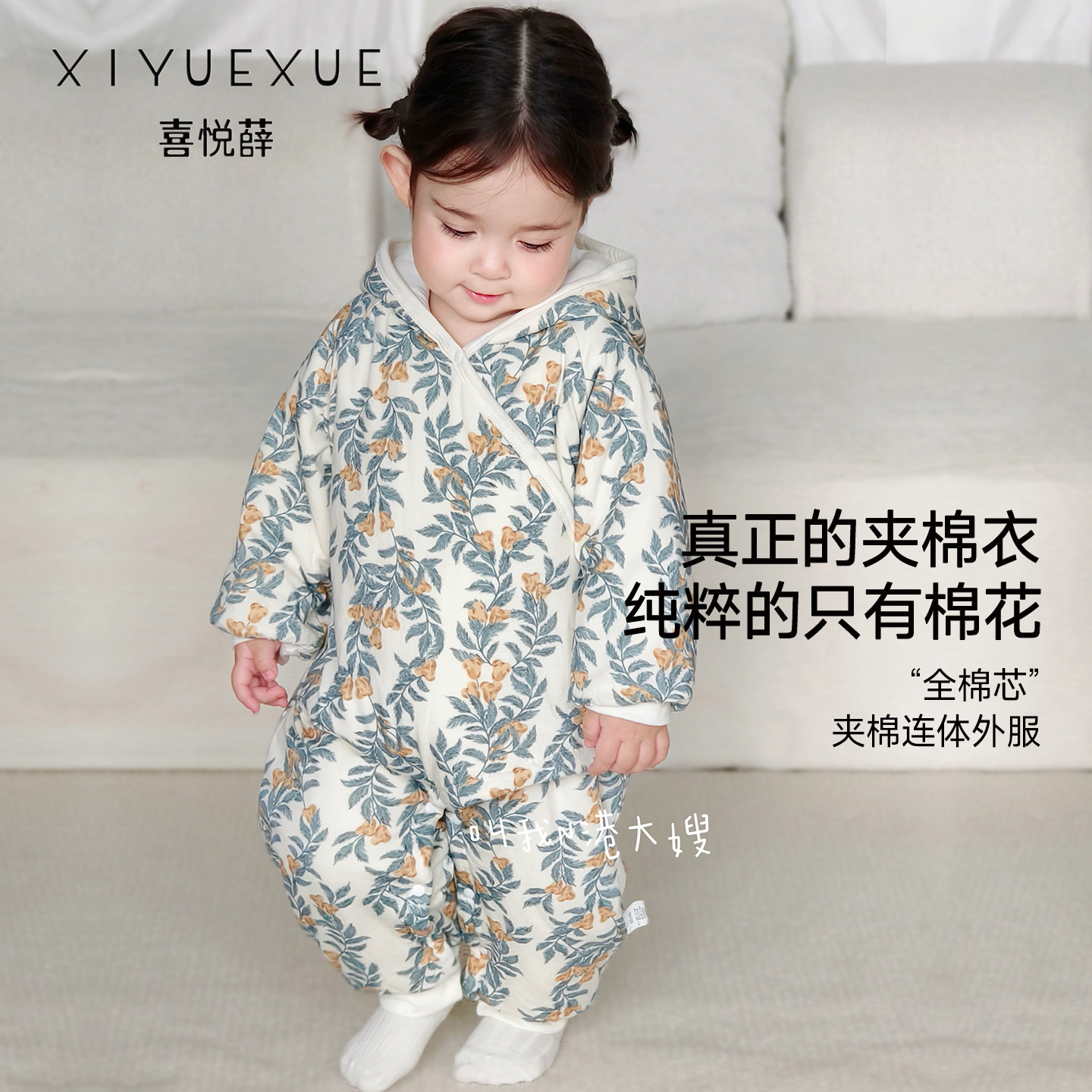 纯棉婴儿连体衣冬季加厚款哈衣儿童宝宝秋冬衣服夹棉保暖外出棉衣