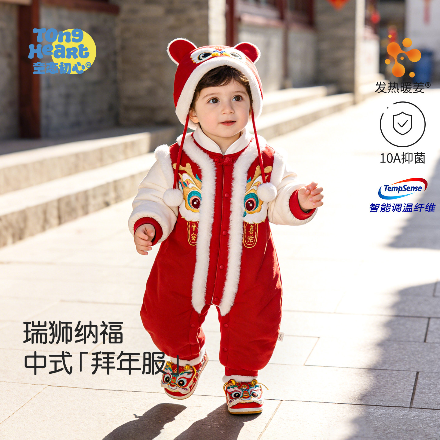婴儿连体衣冬季加厚外出服宝宝过年拜年衣服喜庆婴幼儿加厚周岁服