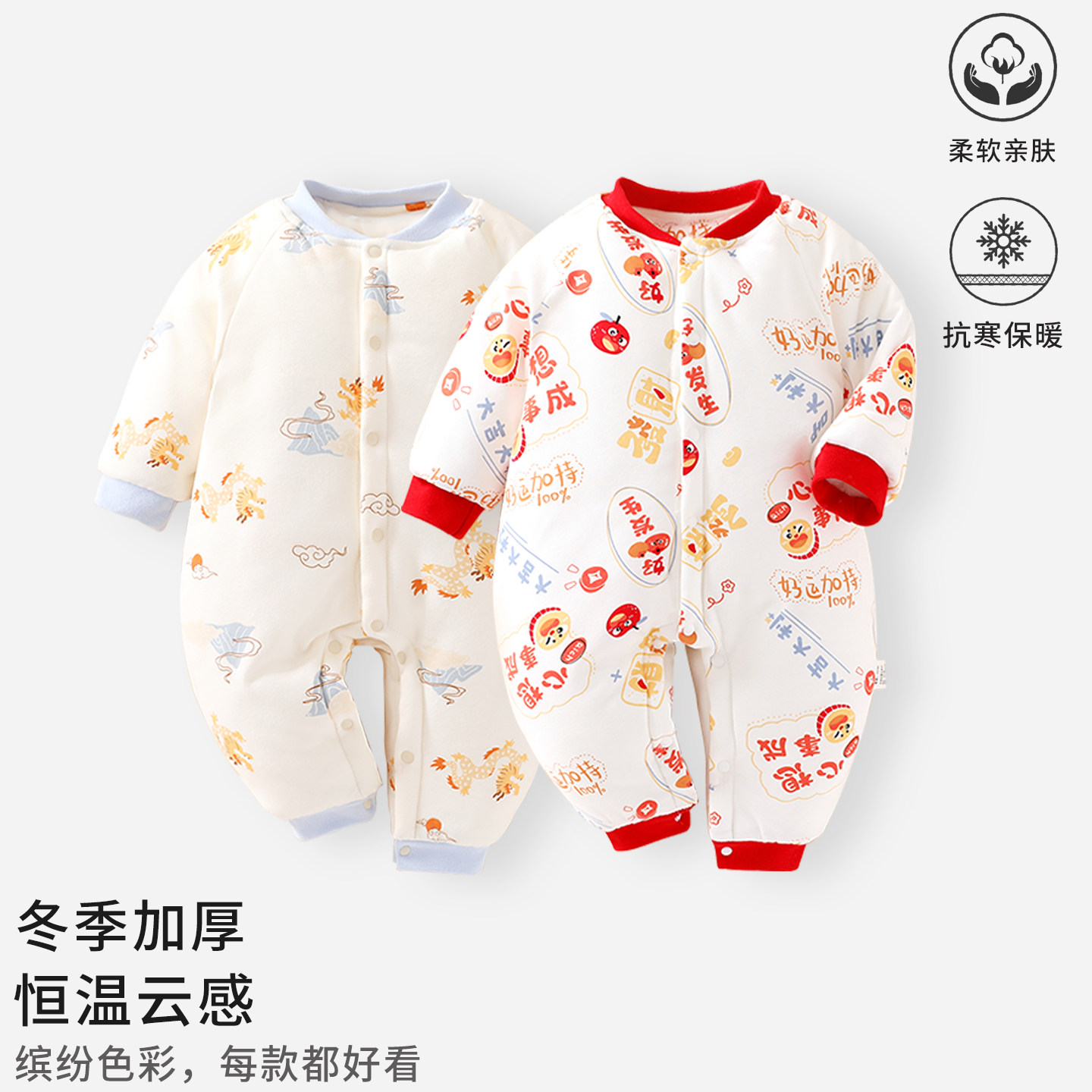 【拜冬年服】婴儿连体衣冬季加厚保暖棉服宝宝过年喜庆衣服新年装