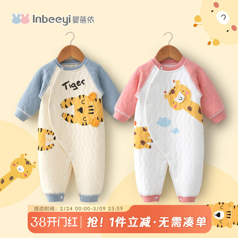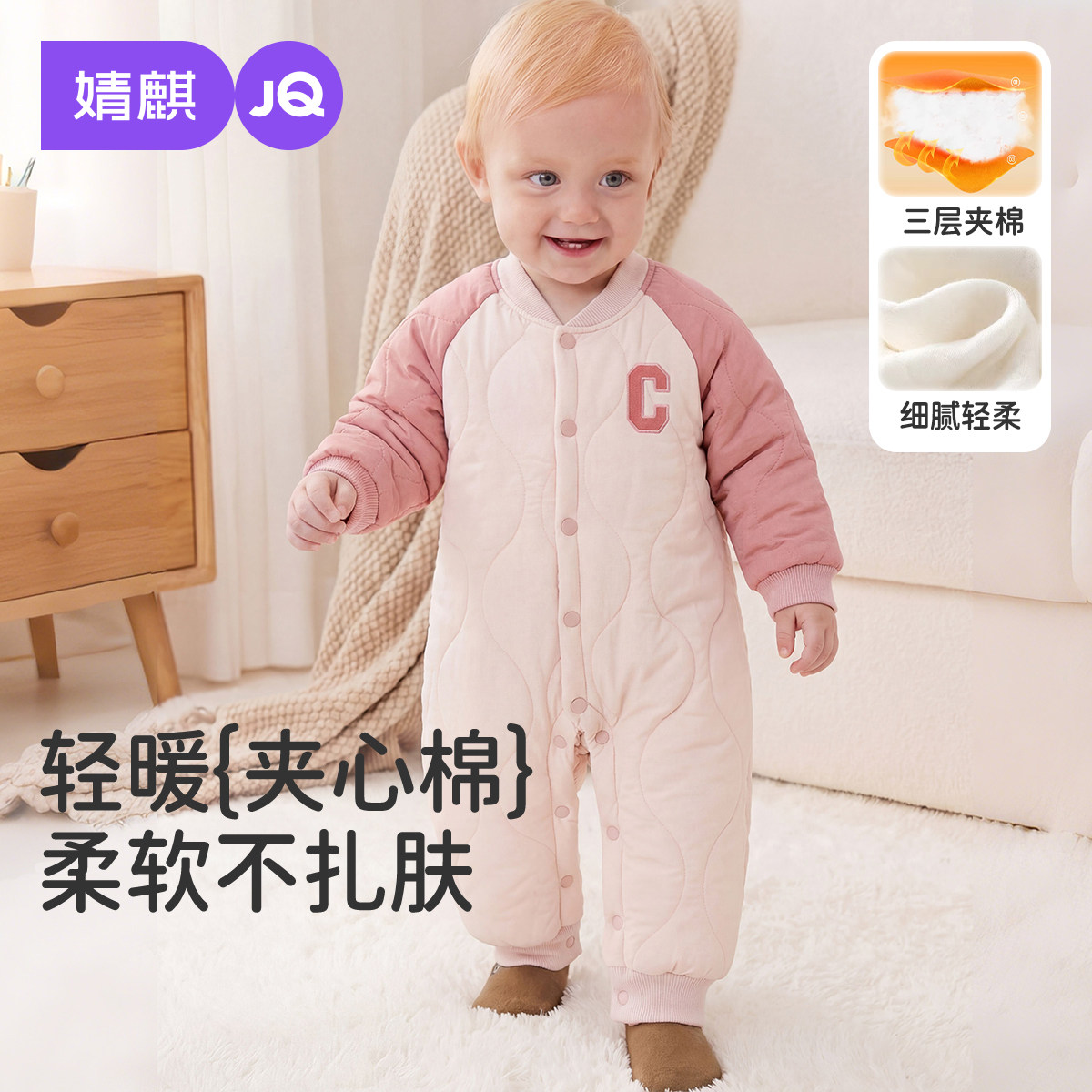 [抑菌a类]夹棉婴儿连体衣冬季加厚爬服加绒棉服保暖哈衣宝宝衣服