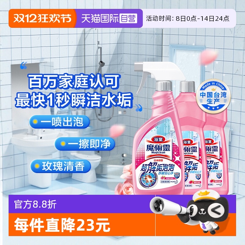 【自营】花王浴室清洁剂玫瑰香去水垢水渍去黄污瓷砖玻璃水龙头*3