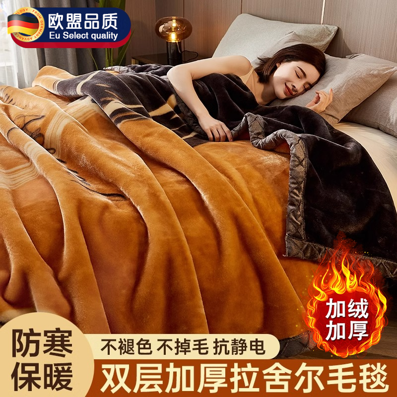 拉舍尔毛毯被子加厚秋冬季双层保暖羊毛绒毯单人双人珊瑚绒盖毯子