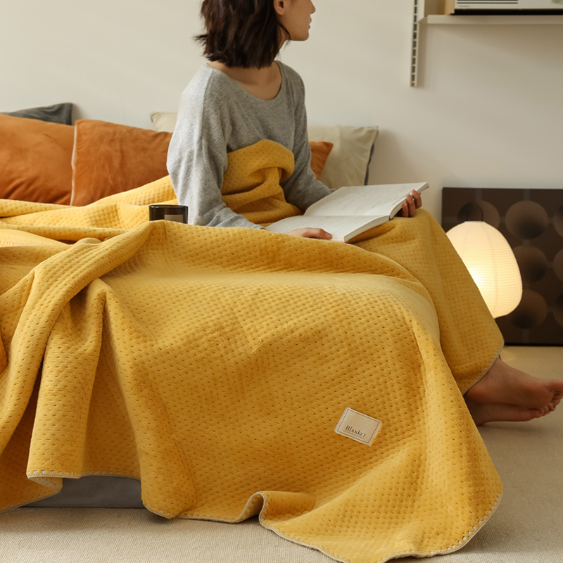 北欧风纯色毛毯秋冬季夹棉绗缝毯加厚保暖绒毯单人盖被珊瑚绒盖毯