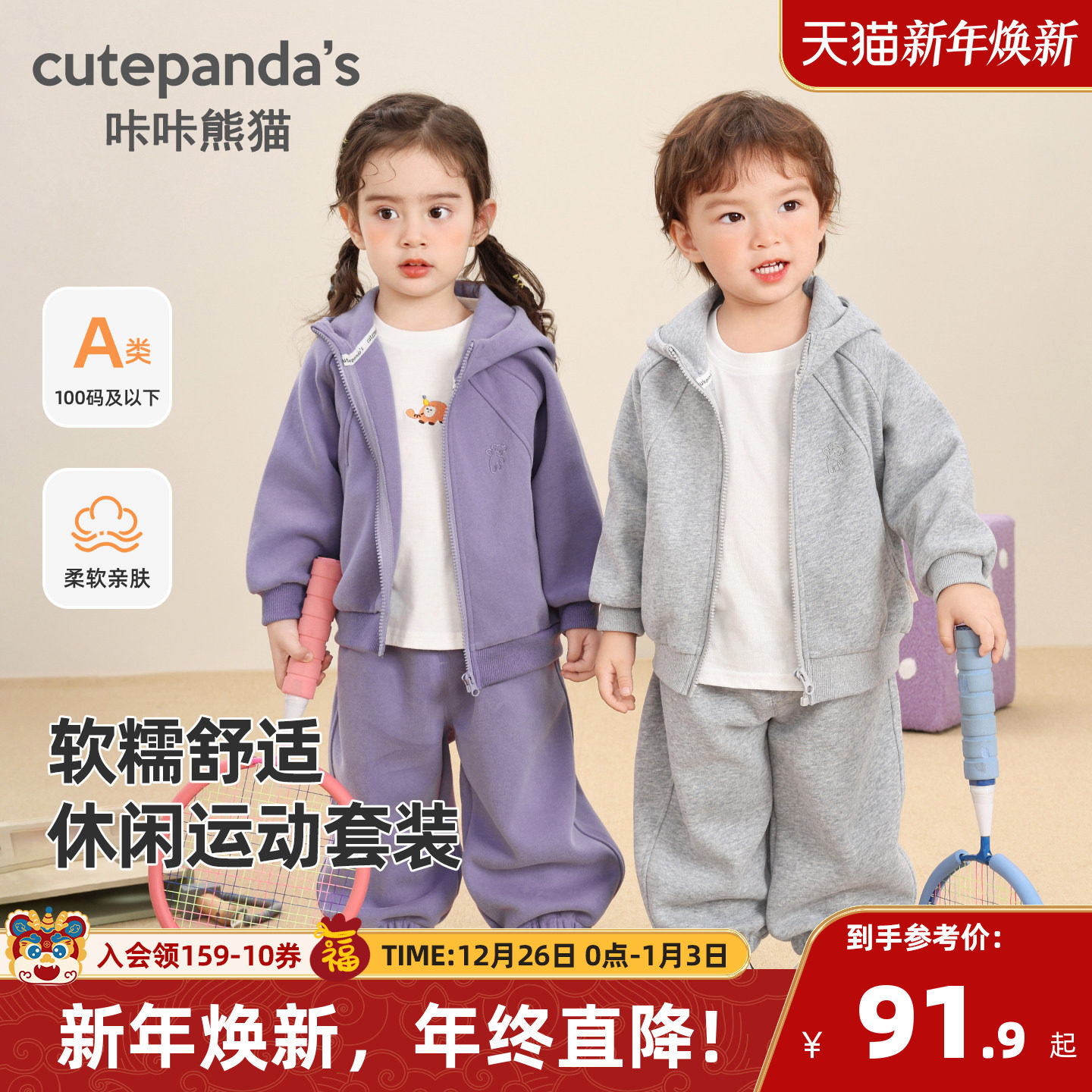 咔咔熊猫宝宝休闲卫衣套装春秋男童女童户外运动两件套秋款衣服潮