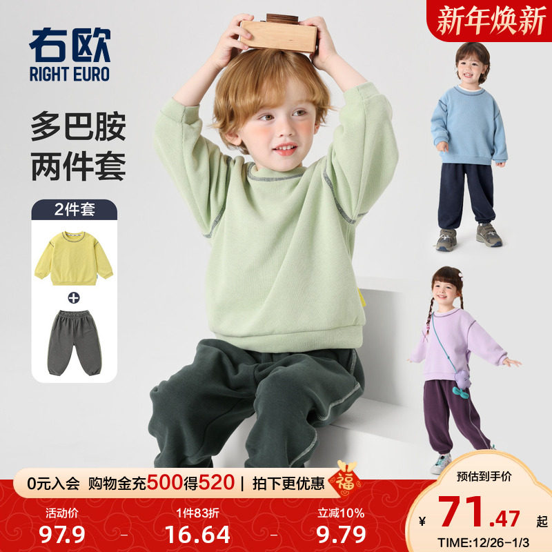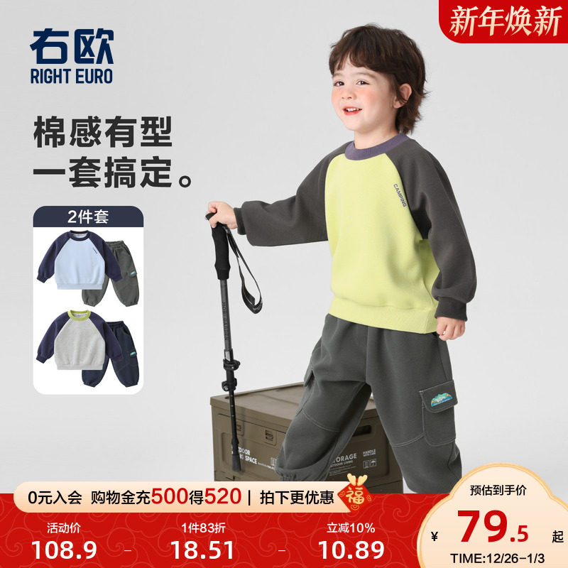 右欧男童女童卫衣卫裤两件套撞色户外运动儿童春秋季套装新款童装