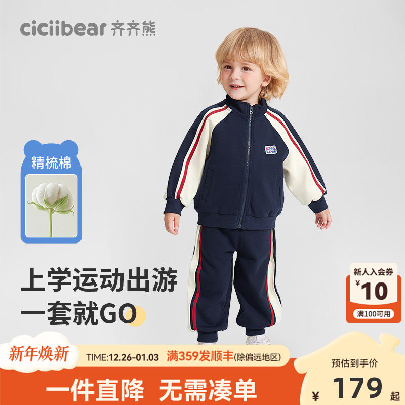 齐齐熊宝宝运动套装男童春秋款童装学院风休闲棒球服儿童户外童装