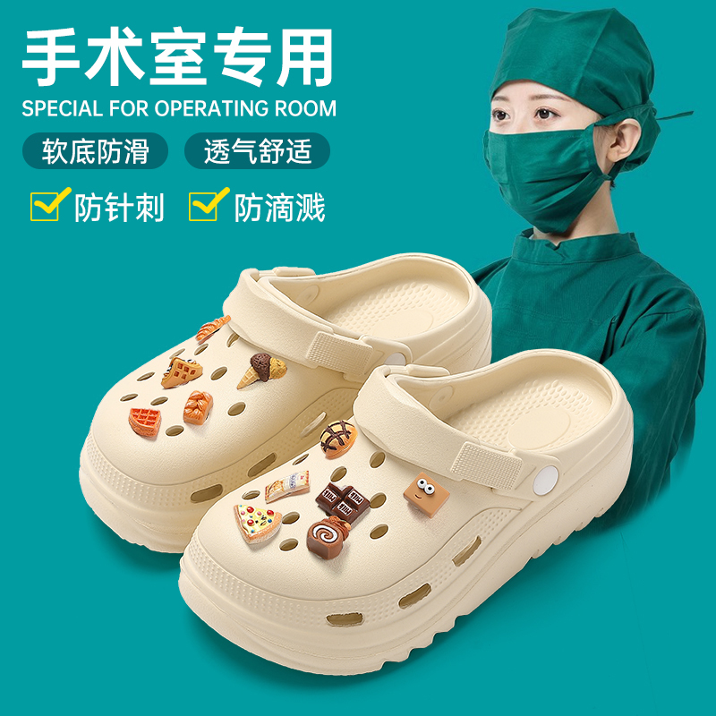 日本进口防滑拖鞋踩屎感洞洞鞋女夏季外穿防滑手术室沙滩包头凉拖