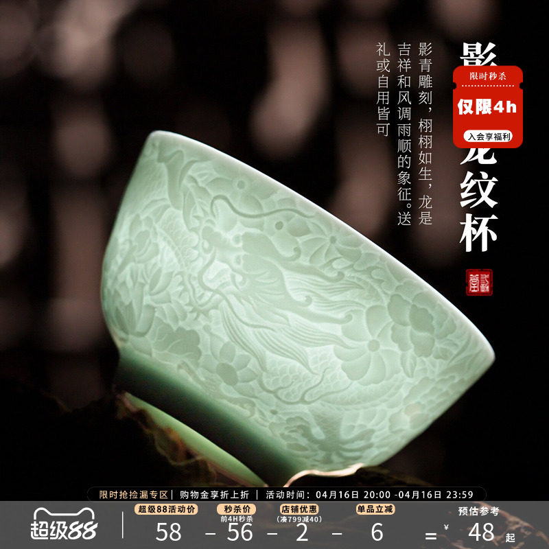 三勤堂影青龙纹单杯主人杯景德镇品茗杯茶杯个人专用高档功夫茶具