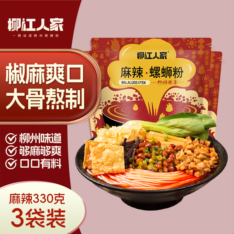 柳江人家柳州麻辣螺蛳粉330g*3包广西螺狮粉方便面速食包邮螺丝粉