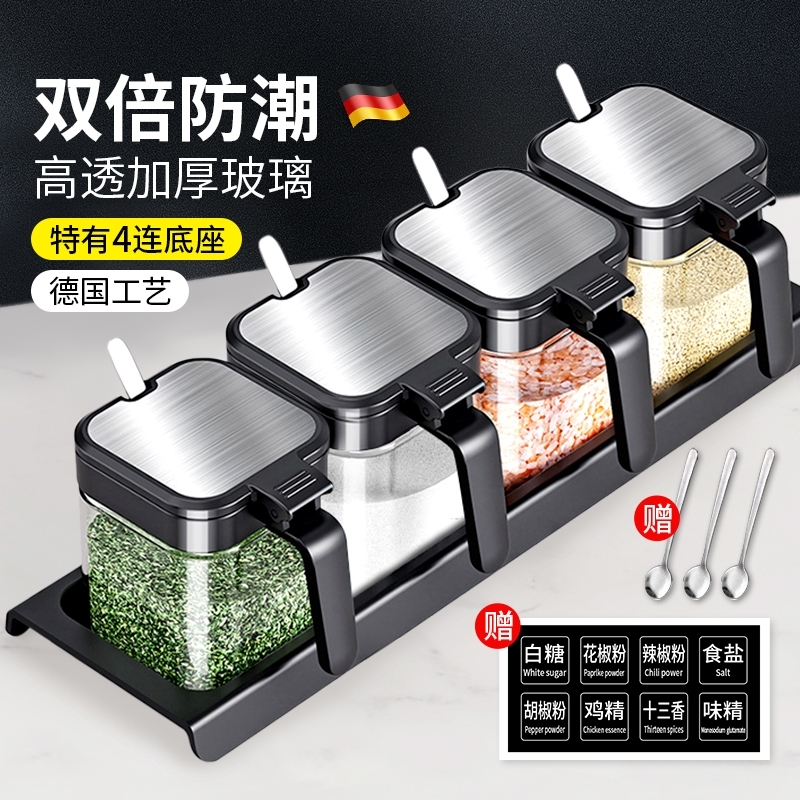 新款密封调料瓶调料厨房玻璃家用调味盐罐套装收纳盒防潮味精收纳